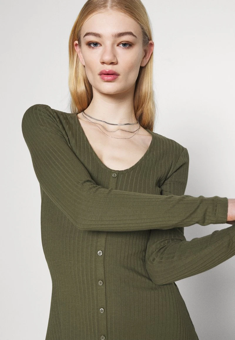 Bestpreis 🧨 Even&Odd Ribbed Button Through Mini 🌟 Dress – Strickkleid – Green | Damen ⌛